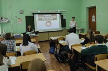 18 апреля 2022г представитель Казанского технологического колледжа ФГБОУ ВО "КНИТУ" Уйбекова Л. Х. с учащимися 9а, 9б и 9в классов провела профориентационную беседу.