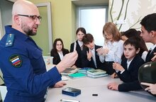 В 8А классе классный час провёл Халиков И. А., профессор кафедры ОРД Казанского юридического института (филиала) университета прокуратуры РТ. Тема лекции "Поисковое движение России".