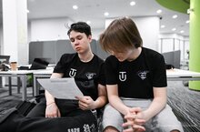 Преподаватели института показали аудитории с интерактивными панелями, уютную библиотеку с архивными изданиями и даже разрешили заглянуть в студенческий медиацентр.