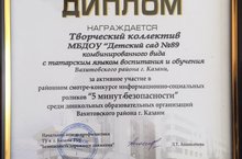 Безнең балалар бакчасының иҗат коллективы, районкүләм мәгълүмати - социаль роликлар бәйгеседә катнашкан өчен диплом белән бүләкләнде.