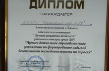 Безнең балалар бакчасы, районкуләмендә "Юлларда тормыш иминлеге күнекмәләрен формалаштыру буенча иң яхшы белем бирү учреждениесе" номинациясендә җиңү яулады.