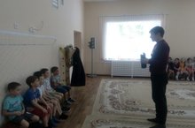 Анда безнең тәрбияче Сибгатуллина Г.Ф икенче кечкенә төркем балалары белән ачык шөгыль күрсәтте “ Светофор безнең дустыбыз”. Кунакка куянкай килде.Балалар аңа юлны дөрес итеп чыгу күнекмәләрен аңлатыллар һәм светофор белән таныштырдылар. Тәрбияче әзерләгән макетта светофор утларын пластилиннан ябыштырдылар һәм җюрига бүләк иттеләр.