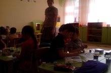 Бүген икенче кечкенәләр төркемендә- Гыйлманова Гөлчирә Марсель кызы дигән тәрбияче, физик тәрбия буенча закон таләпләренә җавап бирә торган план - конспект төзеп, кызыклы, нәтиҗәле шөгыль үткәрде. Гөлчирә Марсель кызы балаларда яхшы кәеф тудыру өчен, физик күнегүләр һәм уеннар сайлаганда, балаларга индивидуаль якын килеп, яшь үзенчәлекләренә туры килгән күнегүләр сайлады. Хәрәкәтле уенга аеруча игътибар бирелде, “Песи белән тычканнар” дигән уен уйналды. Тәрбияченең барлык балаларны да уенга тарта белүе, осталыгы, иҗат фантазиясе, активлыгы җитәрлек булмаган балаларны да дәртләндерә торган алымнар таба белүе бик мөһим булды.