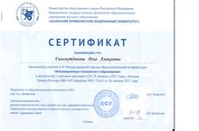 Старший воспитатель Гильмутдинова Р.А. приняла участие в IV Международной научно - образовательной конференции "Инновационные технологии в образовании", выступила с научным докладом 24 феврвля в КФУ г. Казани.