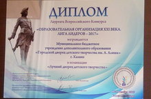 Поздравляем ГДДТ им.А.Алиша с победой во Всероссийском конкурсе "Образовательная Организация XXI века. Лига Лидеров-2017г" в номинации "Лучший дворец детского творчества"