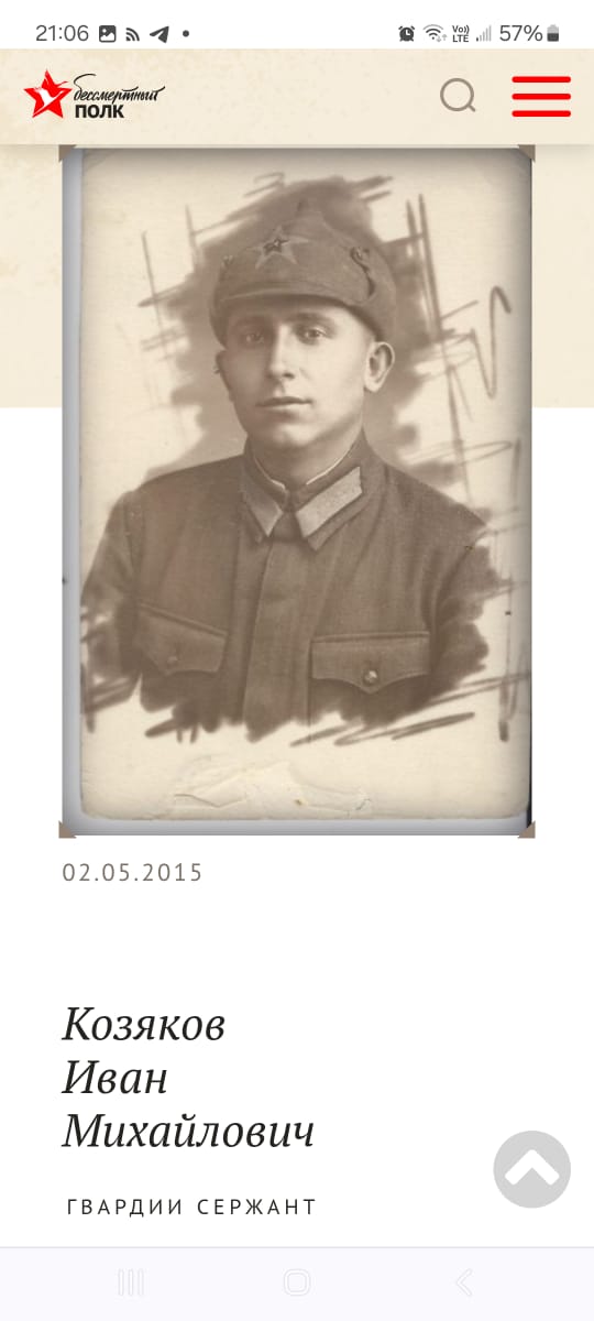 Ветеран Великой Отечественной Войны – Козяков Иван Михайлович