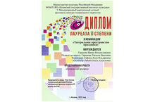 Поздравляем коллектив театра эстрады, сатиры и юмора "ЕрашОК" (педагоги: Ирина Владиславовна Гордеева, Танзиля Наилевна Гарипова и Алия Ильдаровна Сафина) с получением диплома лауреатов 2 степени в номинации "Театральное пространство праздника" V международного виртуального сетевого фестиваля-конкурса театрального творчества "Праздничность Со-Бытия", организованного Казанским государственным институтом культуры при поддержке Министерства культуры Российской Федерации! Коллектив представил на суд зрителей и членов жюри творческую работу "Покровская ярмарка".