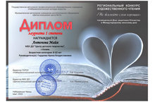 Поздравляем Антонову Майю, учащуюся театра эстрады, сатиры и юмора "ЕрашОК" (руководитель Ирина Владиславовна Гордеева) с получением диплома лауреата I степени регионального конкурса художественного чтения "Не жалейте слов хороших", посвященного Дню защитника Отечества и Международному женскому дню!