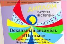Поздравляем вокальную студию "Шатлык" и ее руководителя Миляушу Рифатовну Альмееву с получением диплома лауреата III степени международного заочного детско-юношеского конкурса "Путь к успеху"!