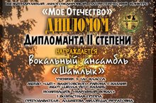 Поздравляем вокальную студию "Шатлык" и ее руководителя Миляушу Рифатовну Альмееву с получением звания дипломантов II степени международного многожанрового патриотического конкурса "Мое Отечество"!