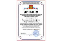 Поздравляем педагога дополнительного образования Тарвердян Алсу Ханифовну с победой во Всероссийском конкурсе профессионального мастерства работников сферы дополнительного образования "Мы учим жить сердцами и делами". Алсу Ханифовна стала лауреатом II степени в номинации "Организация современных подходов гражданско-патриотического воспитания подрастающего поколения в рамках Федерального государственного образовательного стандарта".