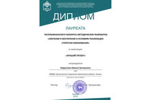 Поздравляем педагога дополнительного образования Бердникову Марину Григорьевну с получением диплома лауреата в номинации "Лучший проект" республиканского конкурса методических разработок "Обучение и воспитание в условиях реализации стратегии образования"! 04.12.2019