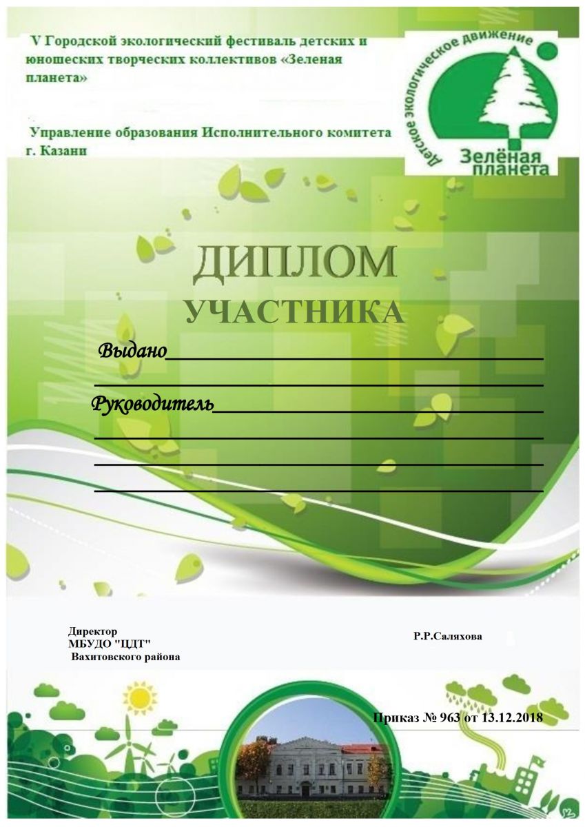 - Диплом участника V городского экологического фестиваля детских и юношеских творческих коллективов "Зеленая планета" 14.01.2019