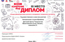 Поздравляем учащихся театральной студии "ЕраШок" (педагог Гордеева И.В.) с победой в V Всероссийском фестивале детского и молодежного театрального мастерства "Другое измерение"!!! Ребята получили диплом III степени.