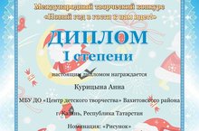 Поздравляем обучающихся студии «Волшебная кисточка» (педагог Фоменко А.Р.) с Победой в Международном творческом конкурсе «Новый год в гости к нам идет». Результаты конкурса: Волкова Виктория, Морозова Олеся, Курицына Анна - I место; Халдеева Даша, Джафарова Аида, Ибрагимова Аделина, Шашова Евгения - II место; Завьялов Амир, Тулупова Ярослава, Мангушева Карина - III место.