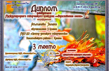 Поздравляем Агъмалову Эллину, обучающуюся объединения ИЗО (педагог Бердникова М.Г.), занявшую III место в Международном творческом конкурсе «Вдохновение осени».