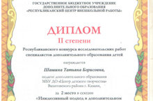 Поздравляем педагога Шашину Татьяну Борисовну с победой (второе место) в Республиканском конкурсе исследовательских работ специалистов дополнительного образования детей.