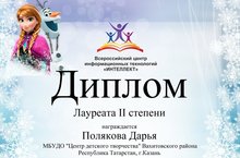 Подведены итоги Международного творческого конкурса "Зима-волшебница!" . По итогам конкурса: Горобец Олег И Бяулова Дарья (объединение Аппликация) педагог Байрамова Г.Г. заняли 3 место! Минлебаева Ляйсан и Гайнетдинова Дина (студия декоративного вязания) педагог Егорова Е.Е. заняли 1 место! Молодцы! Так держать!!!