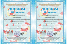 Поздравляем Ахметову Алину с дипломом 3 степени и Хамадьярову Ренату с дипломом 2 степени (педагог Богатырева Н.А.) в Международном творческом конкурсе "Новый год в гости к нам идет!". Молодцы!