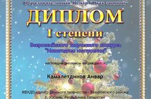 Поздравляем Камалетдинова Анвара, обучающегося объединения «Рукоделие» (педагог Шигапова Г.Р.) за победу (Диплом I степени) во Всероссийском творческом конкурсе «Новогоднее настроение» в номинации «Декоративно-прикладное творчество».