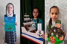 Учащиеся студии "Радуга творчества" (на фото) под руководством Лии Михайловны Быстровой ко Дню защитника Отечества подготовили своим папам великолепные открытки. Пожелания, признание в любви и уважении - все это спрятано внутри и предназначено только им. Молодцы ребята!