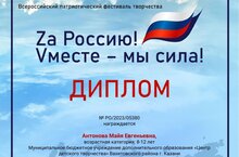Во всероссийском патриотическом фестивале творчества "За Россию! Вместе - мы сила!" лауреатом l степени в номинации "Художественное чтение" стала учащаяся театра эстрады, сатиры и юмора "ЕрашОК" Антонова Майя. Руководитель Гордеева Ирина Владиславовна. Поздравляем!