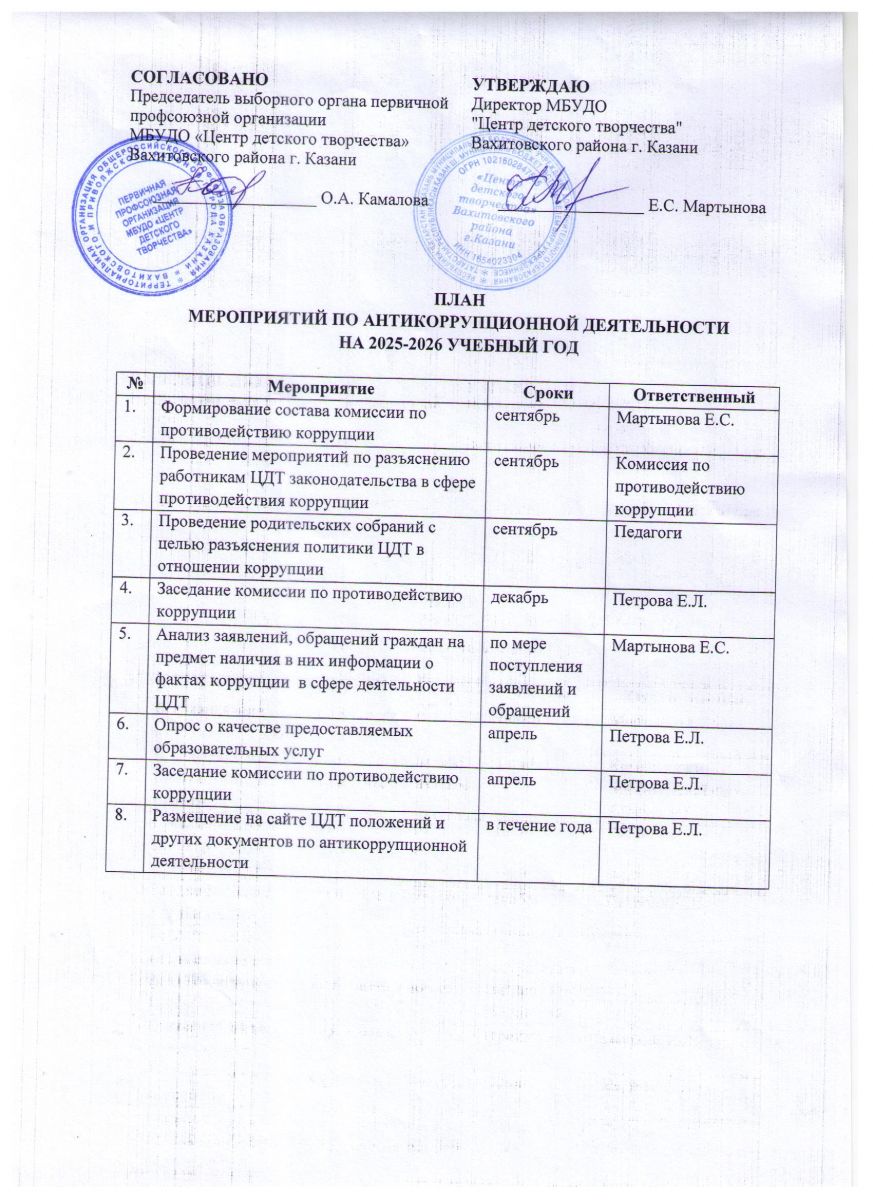 План мероприятий по антикоррупционной деятельности в ЦДТ 2025-2026