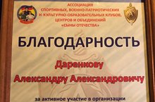 25-26 марта в городе Набережные Челны прошел Всероссийский турнир по Армейскому рукопашному бою, посвященный ветеранам спецподразделений Вооруженных Сил РФ, в котором наш педагог по каратэ Даренков. А.А был отмечен Благодарностью за активное участие в организации и проведении турнира. А также в рамках этого турнира Даренкова А.А наградили Благодарственным письмом от Всероссийской политической партии "Единая Россия".