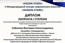 Учащиеся ДШИ им.М.А.Балакирева, ансамбль «Семицветик» стал лауреатом I степени в V Международном конкурсе современного искусства «КАЗАНЬ STARS»!