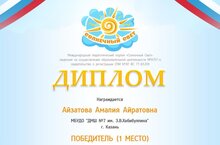 По результатам конкурса, учащаяся нашей школы, Айзатова Амалия (руководитель – Хабибулина И.Г.) награждена Дипломом победителя (I место) за творческую работу «Жизнь и творчество Салиха Сайдашева».