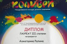 С 29 февраля по 1 марта 2020 года в ДШИ Авиастроительного района г.Казани проходил Международный конкурс детского творчества «Колибри».По результатам конкурса, в номинации «Инструментальное исполнительство. Соло. III возрастная категория», учащаяся нашей школы, Ахметшина Ралина (преподаватель – Волченко Л.П., концертмейстер – Романова И.П.) – Лауреат III степени.ПОЗДРАВЛЯЕМ И ЖЕЛАЕМ ДАЛЬНЕЙШИХ ТВОРЧЕСКИХ УСПЕХОВ!!! -