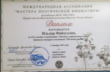11 декабря 2019 года в Москве на улице Пятницкой состоялась презентация Международного литературно-художественного, научно-критического, культурно-просветительского альманаха «Полевые цветы», в котором были опубликованы лучшие миниатюры из России, Белоруссии, Казахстана, Германии и Украины.Третий номер альманаха увидел свет при поддержке и в рамках издательской программы Международного сообщества писательских союзов и Общероссийской общественной организации «Россия – Япония».Международной ассоциацией «Мастера поэтической миниатюры» за III место в номинации «Лучшие современные хайку» Третьего конкурса альманаха «Полевые цветы» дипломом награждён преподаватель нашей школы, Файзуллин И.М.ПОЗДРАВЛЯЕМ И ЖЕЛАЕМ ДАЛЬНЕЙШИХ ТВОРЧЕСКИХ УСПЕХОВ!!! -