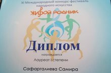 23 марта 2019 года в Центре детского творчества Вахитовского района г.Казани состоялся XI Международный конкурс-фестиваль народного искусства «Живой родник».По результатам конкурса, учащаяся нашей школы, Сафаргалиева Самира – Лауреат I степени (преподаватель – Маева Т.И.).НАШИ ПОЗДРАВЛЕНИЯ!!! -