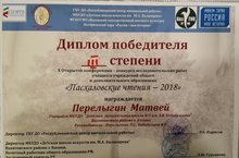 20 апреля 2018 года в Детской школе искусств им. М.А.Балакирева Вахитовского района г.Казани состоялась Х Открытая Республиканская конференция-конкурс исследовательских работ учащихся учреждений общего и дополнительного образования «Пасхаловские чтения – 2018».В конкурсе принял участие и был награждён Дипломом победителя III степени учащийся ДМШ №7 им.З.В.Хабибуллина Перелыгин Матвей (руководители – Перелыгина Л.С., Хабибулина И.Г.).Поздравляем!!! -