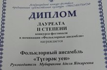 Поздравляем фольклорный ансамбль «Тугэрэк уен» и его руководителя Мубаракову А.Я. с дипломом лауреата II степени Международного конкурса-фестиваля традиционной художественной культуры «Этномириада»!