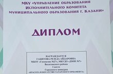 27 февраля 2025 года в МБУДО «Центр внешкольной работы Московского района» г.Казани под эгидой МКУ «Управление образования Исполнительного комитета муниципального образования г.Казани» состоялся Городской конкурс «Красота и богатство татарского орнамента», в котором приняли участие учащиеся художественного отделения нашей школы (преподаватель – Габитова Р.А.).