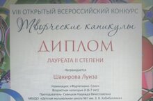 По результатам конкурса, в номинации «Фортепиано. Соло. Возрастная категория: А (6 – 7 лет)», учащаяся нашей школы, Шакирова Луиза (преподаватель – Савицкая Н.В.) – Лауреат II степени.