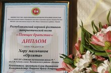 В мероприятии принял участие и был награждён дипломом фестиваля младший хор мальчиков «Орлята» ДМШ №7 им.З.В.Хабибуллина (преподаватель – Арсентьева Е.В., концертмейстер – Романова И.П.).