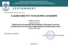 29 мая 2025 года в ГАОУ ДПО «Институт развития образования Республики Татарстан» при участии МБУДО «Детская школа искусств №3» Ново-Савиновского района г.Казани состоялся круглый стол «Проблемы реализации инклюзивного обучения в системе музыкально-эстетического образования и воспитания детей».