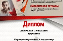 30 апреля 2025 года в г.Волгоград в онлайн-формате под эгидой МБУ «Центр культуры и молодёжной политики Красноармейского района Волгограда», АНО «Центр реализации социальных инициатив «Проспект», РО «Департамент по межнациональным, межконфессиональным и межкультурным отношениям «Всероссийского комитета по разрешению экономических конфликтов и защиты прав граждан» по Волгоградской области и ОО «Региональная национально-культурная автономия татар Волгоградской области», состоялся IV Всероссийский межнациональный конкурс чтецов и вокалистов «Моабитская тетрадь» в честь Героя Советского Союза, Мусы Джалиля.