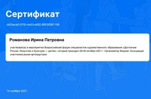 С 28 по 30 октября 2021 года в Москве при поддержке Ассоциации участников рынка арт-индустрии в онлайн-формате состоялся Всероссийский форум специалистов художественного образования «Достояние России. Искусство и культура – детям».