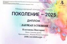 27 апреля 2025 года в КДК им.В.И.Ленина под эгидой Регионального Благотворительного Общественного Фонда развития исполнительского искусства Республики Татарстан «Sforzando» и при поддержке Министерства культуры Республики Татарстан и Управления культуры Исполнительного комитета муниципального образования г.Казани, состоялся Международный конкурс-фестиваль «ПОКОЛЕНИЕ – 2025», в котором приняли участие учащиеся отделения эстрадного (вокального) искусства нашей школы (преподаватели – Валеева Р.С., Кесарева А.С.).