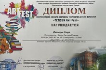 29 апреля 2025 года в г.Санкт-Петербург в онлайн-формате под эгидой Международного арт-центра «ART-LIFE» и при поддержке Сообщества организаторов фестивалей и конкурсов по России и СНГ, творческого объединения «Премьера», Всероссийского центра фестивалей и конкурсов «Меркурий» и Всероссийского центра фестивалей и конкурсов «Империал», состоялся Всероссийский фестиваль-конкурс искусств «Крылья Творчества», в котором приняли участие учащиеся нашей школы.
