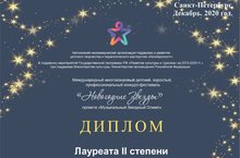 В конце декабря 2020 года в Санкт-Петербурге в онлайн-формате состоялся Международный многожанровый детский, взрослый, профессиональный конкурс-фестиваль «Новогодние звёзды», в котором приняли участие учащиеся и преподаватели нашей школы.