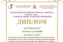 Поздравляем вокальные ансамбли " Клубнички" (Лауреат 1 степени) , "Малинки"( Лауреат 2 степени) и " Весёлые нотки" ( Лауреат 2 степени) , а так же руководителя Гизатуллину Камилю Лемаровну с прекрасными результатами в республиканском конкурсе " Браво- 2026"!