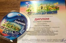Ушакова София стала Лауреатом 1 степени и получила Диплом за авторское сочинение! ( Преподаватель Халикова Н.Г.)