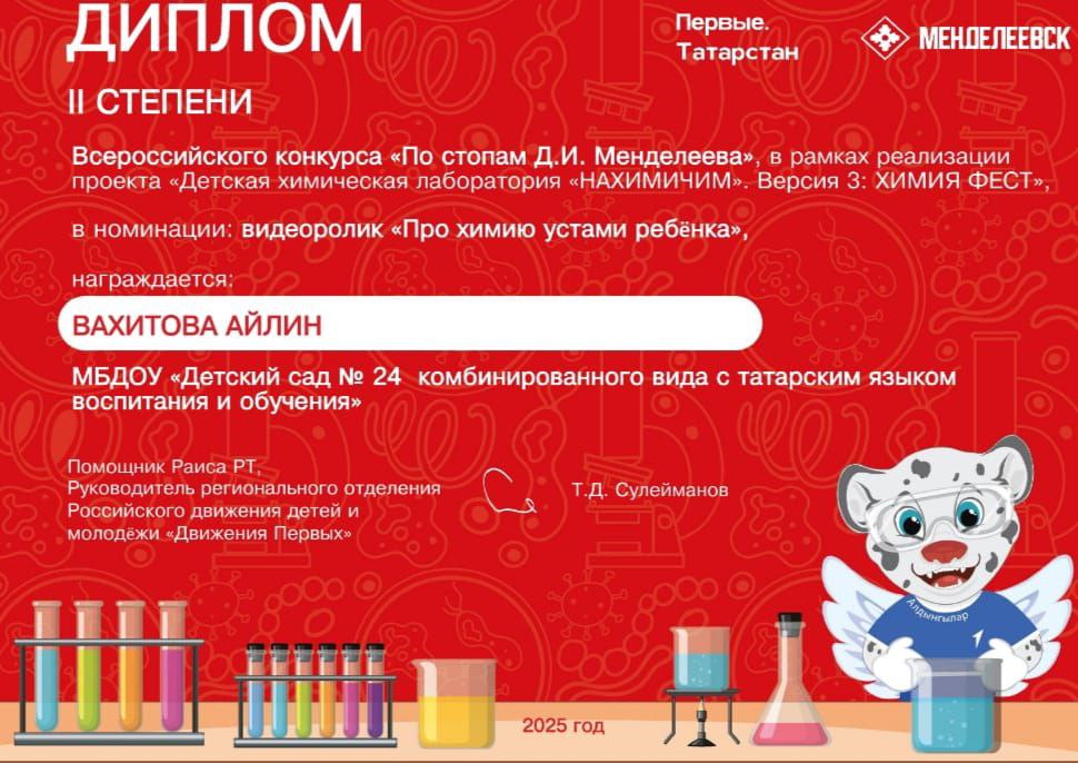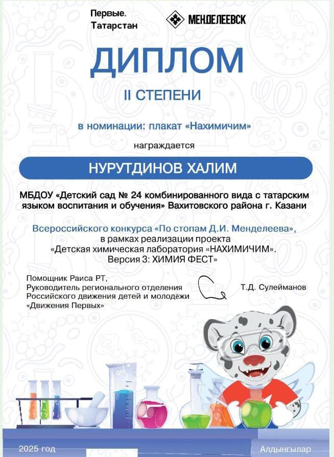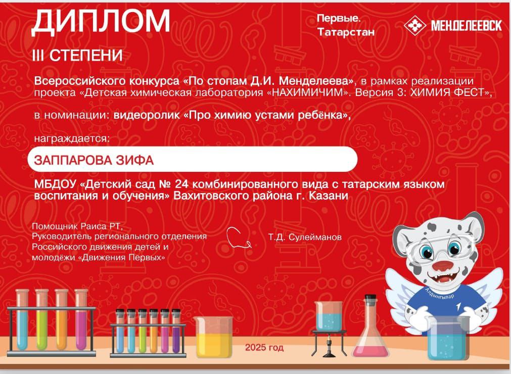 "Алдынгылар" хәрәкәте тарафыннан үткәрелгән бу бәйге, "НАХИМИЧИМ" балалар химик лабораториясен тормышка ашыру кысаларында оештырылды.⠀