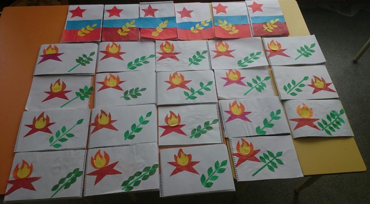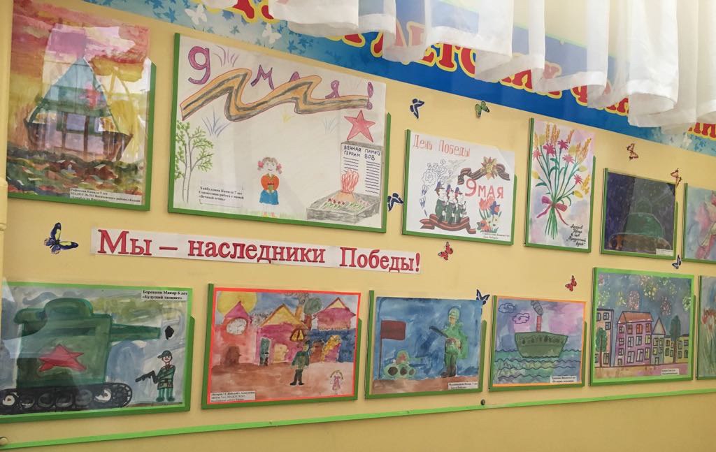 В нашем детском саду прошли праздничные мероприятия, посвященные "Дню Победы": дети старших групп пели военные песни, танцевали, рисовали на военные темы и на тему победы. С детьми младшего дошкольного возраста проведены беседы о войне с показом презентаций, организована творческая деятельность - аппликации к "Дню Победы". В садике организована выставка детских работ "Мы - наследники Победы".