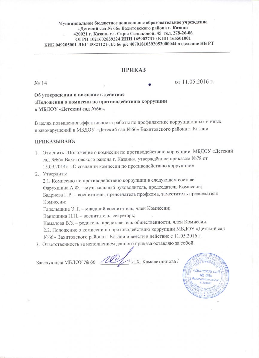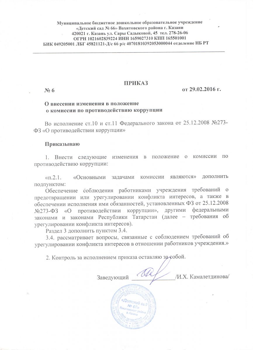Положение о комиссии по противодействию коррупции в новой редакции, май 2016.