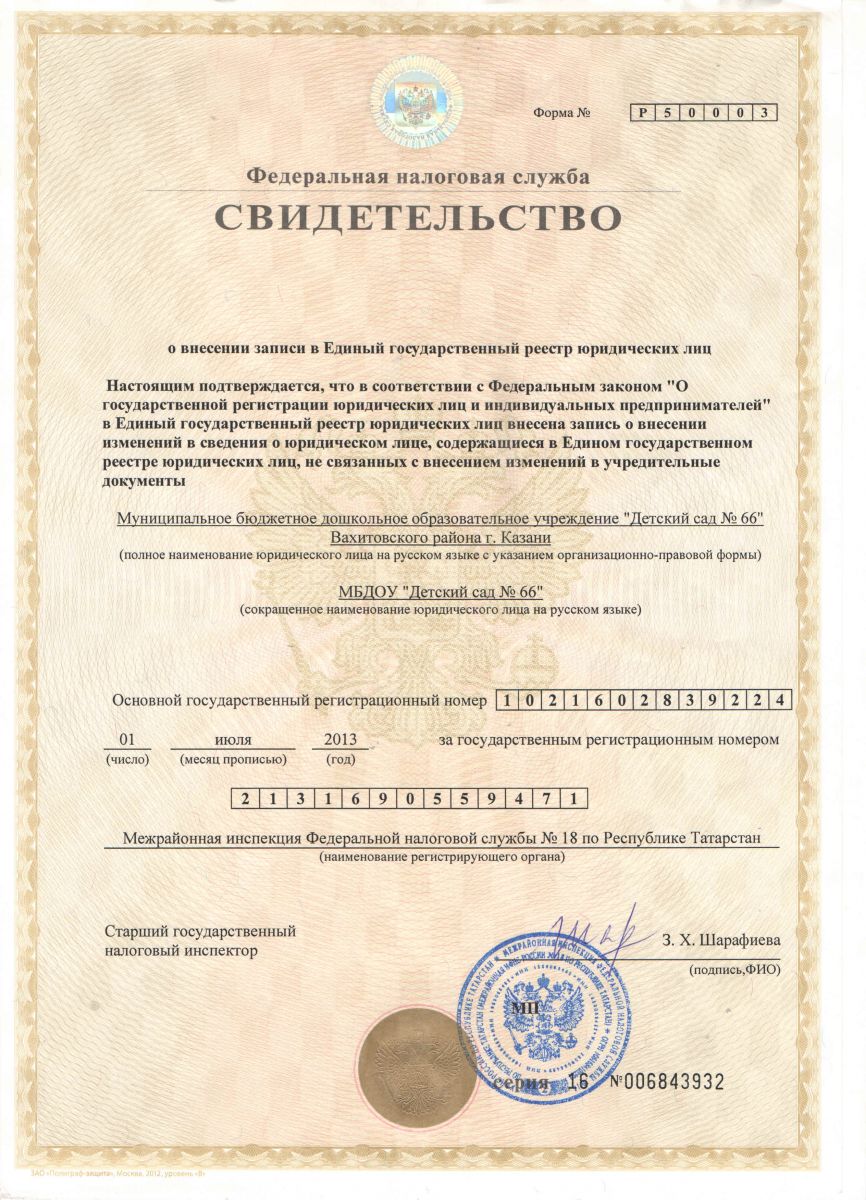 МБДОУ «Детский сад №66» Вахитовского района г.Казани (реорганизация)